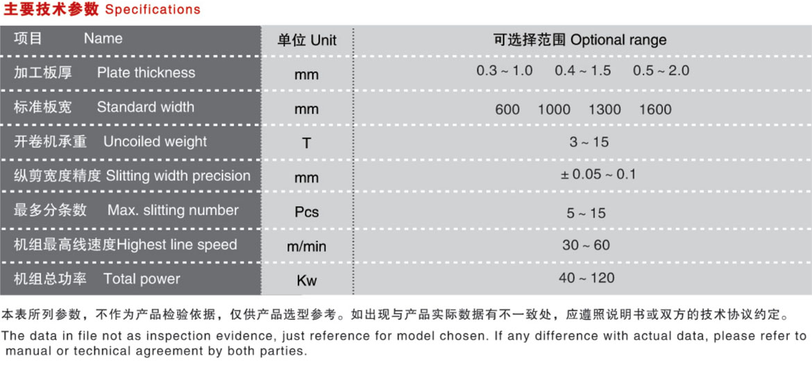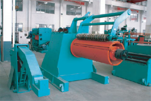 該生產(chǎn)線是將一定寬的金屬卷料薄板在板寬方向縱剪成多條所需寬度的帶材并進(jìn)行成品工件的卷取的成套設(shè)備。