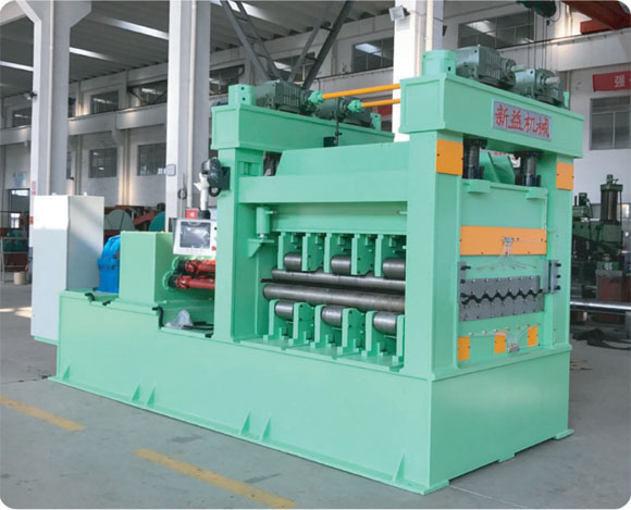 本機床為輥式金屬板料整平專用設備,通常由動力、主機和電器控制等部分組成。利用多輥工作原理,使板料在上、下校平輥之間反復變形,消除應力,達到校平的目的。在上、下排工作輥外側,設剛性支撐輥(輪),構成四重式組輥結構。板料通過本機校平,可明顯改善其平整狀態,提高工件的質量。可獨立工作,用于單塊板材的校平;亦可在本機前配置開卷、引料,后面配置剪切、垛料及聯機機構等,通過控制系統連成性能完備的生產線,對金屬卷材進行整平、分切。