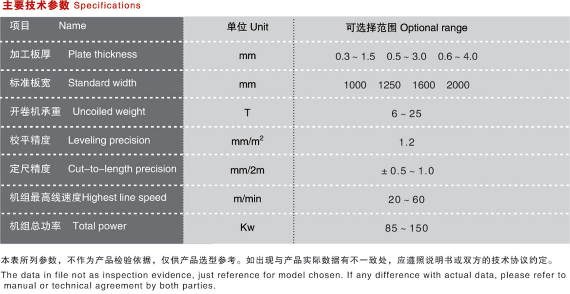 根據客戶要求,校平可采用初、精兩級校平機校平;定長送剪可采用普通機械電器協同動作、數字變頻技術或交流伺服技術;剪板機可配用普通機械、液壓機型,電磁離合器、氣動離合器傳遞動力的高速閘式剪板機,移動跟蹤的追剪以及回轉式飛剪機。配套相關成型機床可作更大范圍功能延伸。
